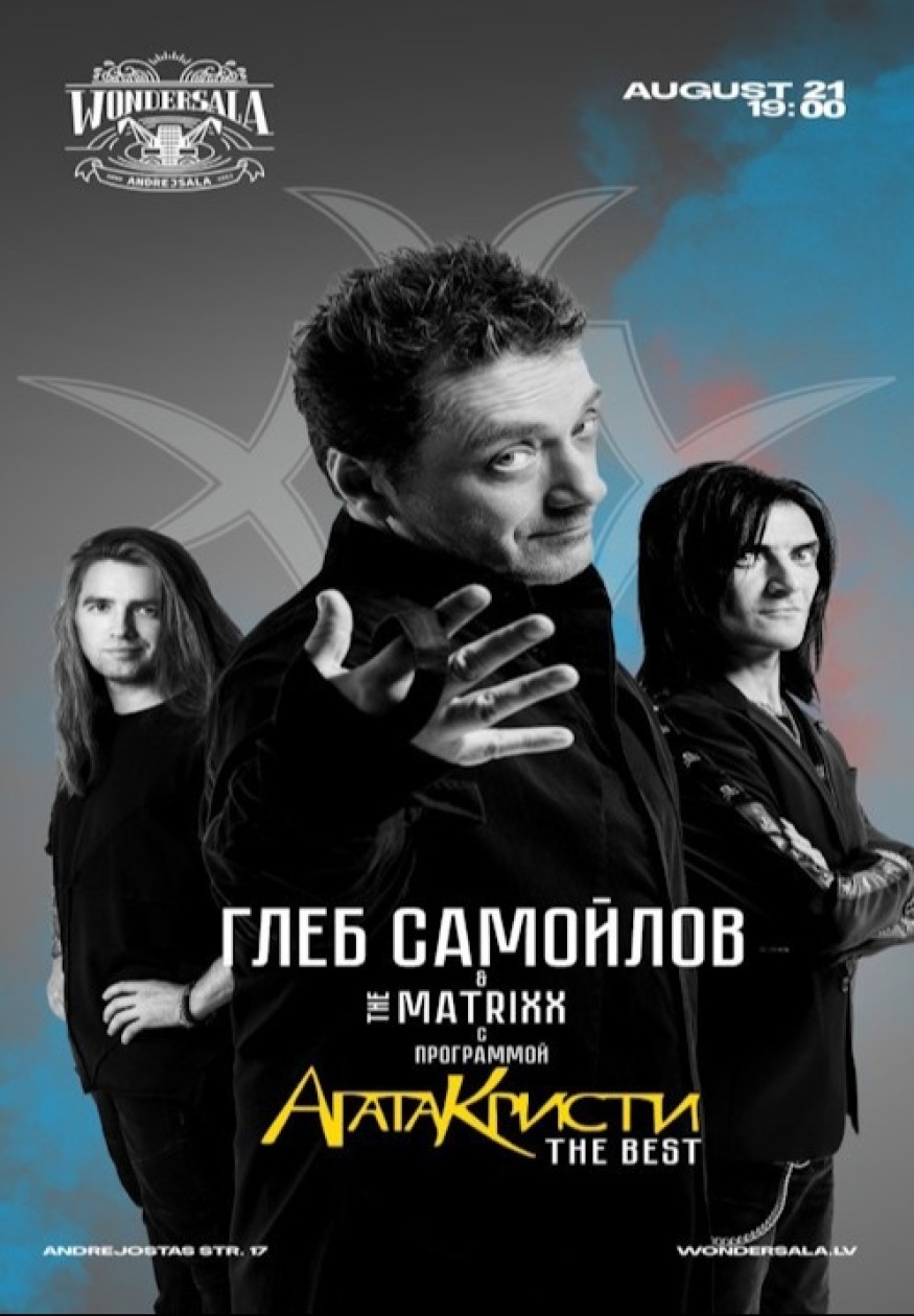 В год своего 55-летия, легендарный солист АГАТЫ КРИСТИ и автор всех хитов группы Глеб Самойлов выступит с грандиозным шоу, состоящим из нетленных хитов легендарного рок-коллектива и лучшими песнями его сольной группы The Matrixx. «Сказочная тайга», «Ковер-вертолет», «Как на войне», «Два корабля», «Секрет» — и это далеко не полный список композиций, которые прозвучат на концерте.